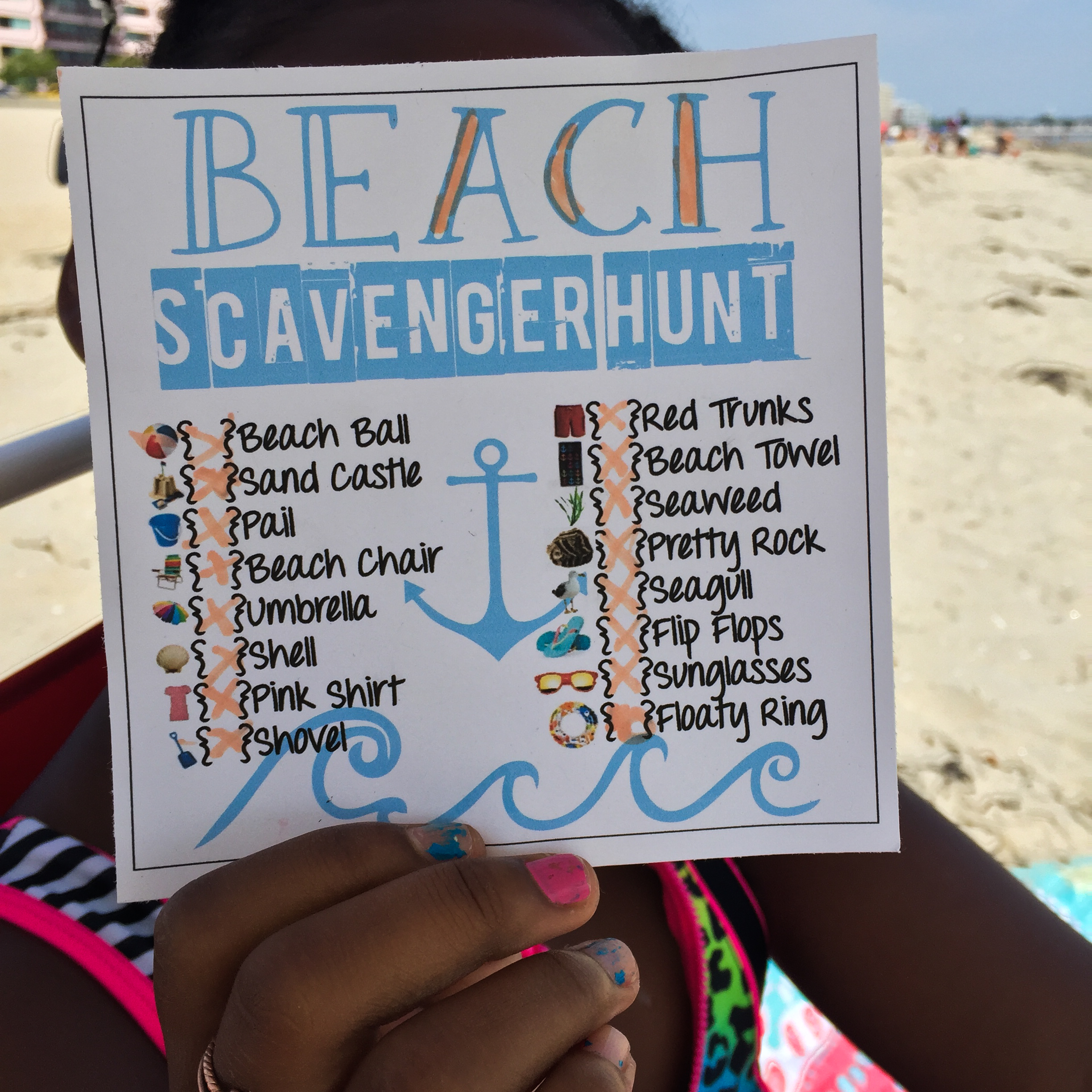 My week-long not long enough vacation started off delightfully. Ben and I made our way to the Hatchshell in Boston to watch Thor on the big screen for an outdoor movie Friday night. Saturday morning, I took my Little Sister to the beach. Talking in the past about places she’d like to go and things she’s like to do (“Meet Harlow!” Always meet Harlow – that’s on our list!), the beach was a reoccurring theme. Since it kept coming back and wasn’t just a phase, I decided I’d bite the bullet and take her. I went to Target the night before and bought beach toys for making a sandcastle, and I found a beach scavenger hunt online and printed it out for her. I packed up some snacks, picked her up and we went to Revere Beach.