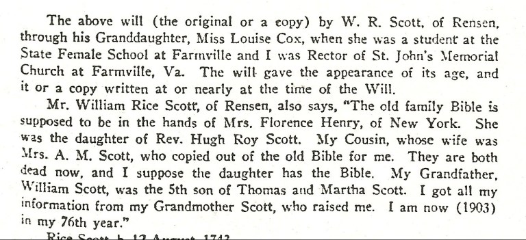 Dad, it turns out, had a hand-made book that great Uncle Bob had made with the help of a genealogist many years ago. It contained a family tree and information about my ancestors, including a copy of the Last Will and Testament of my fifth great-grandfather, Thomas Scott.