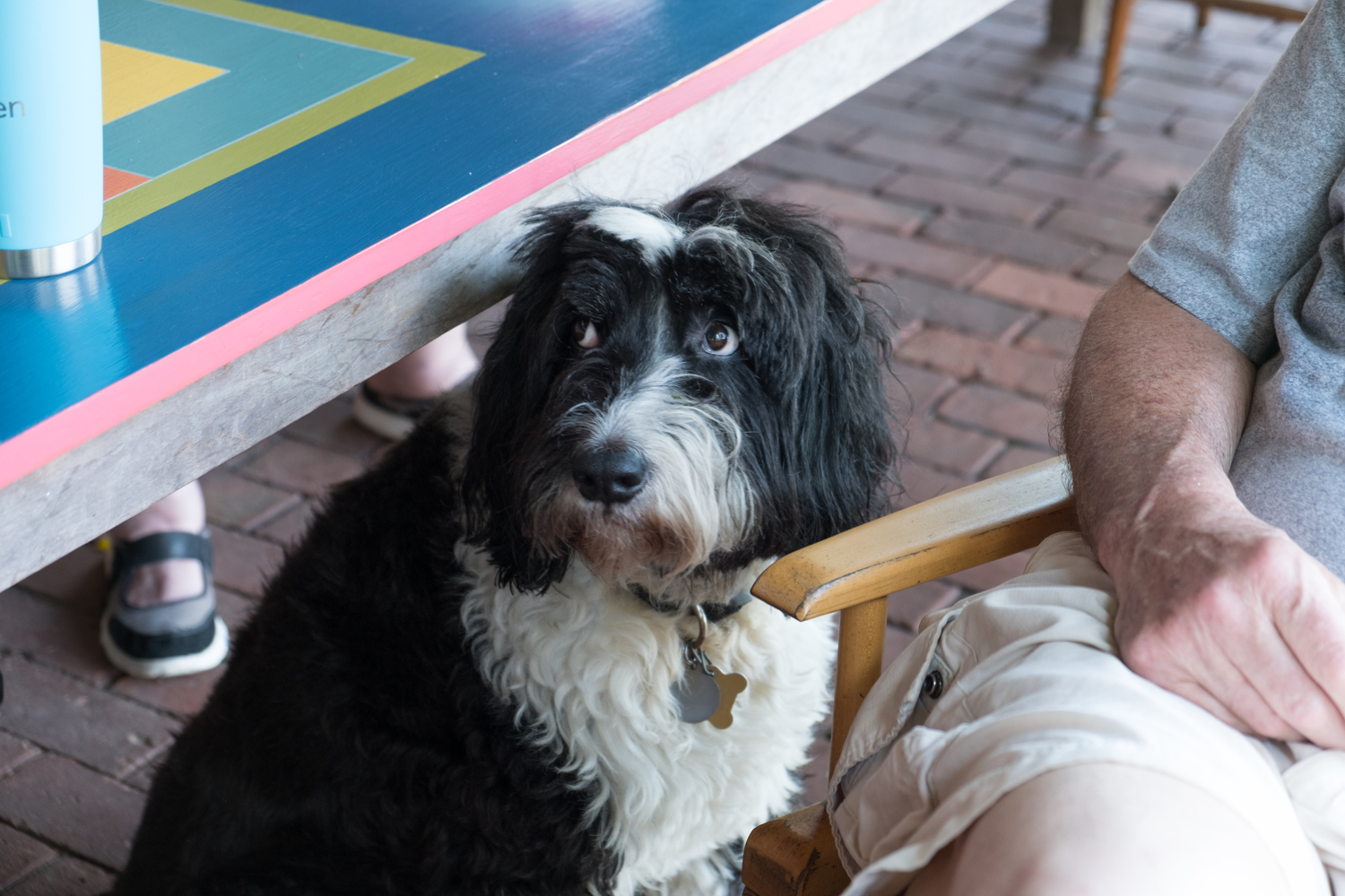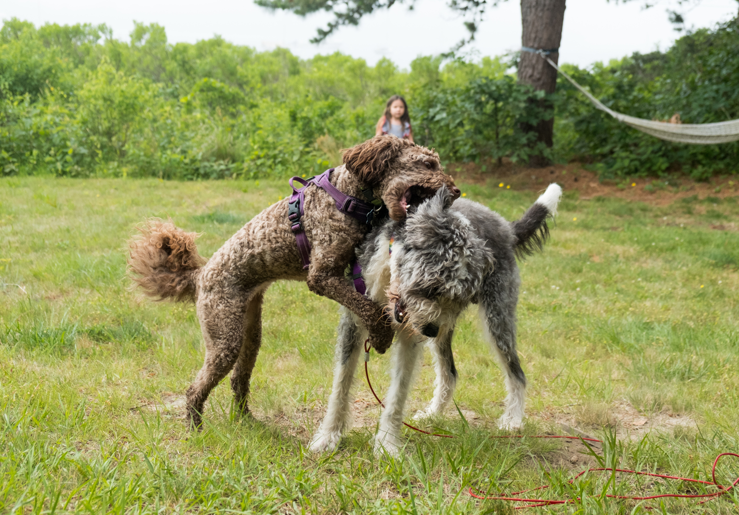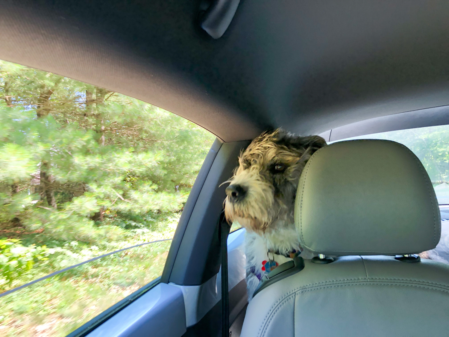 The long weekend, which for me started Wednesday night was really great. Great company, excellent food, and Harlow got along famously with nearly one-year-old Addie, who is a boisterous labradoodle. Actually, I was really impressed with how Harlow just patiently took all of Addie’s jumping and yipping. Addie was also obsessed with Harlow’s ears, and not once did Harlow seem to have an issue with Addie biting on them!