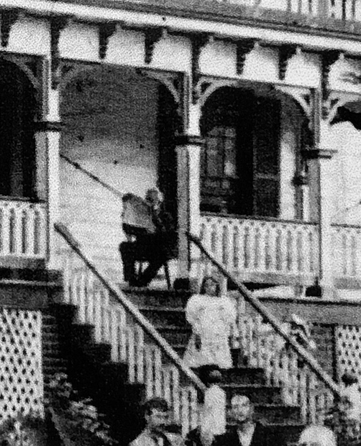 All of the faces of the people in the photo can be seen, which to me means they were composed in this manner. My deepest interest comes from the two children. The one on the stairs appears to be white, but I’m not sure. She is wearing a rather flouncy dress, which implies wealth, or at the very least, middle class.