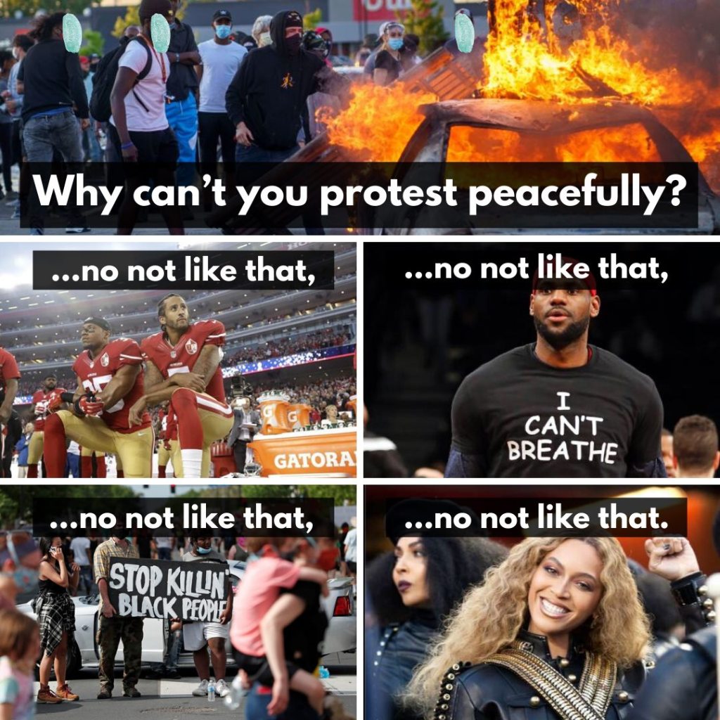 And this below is the most effective response to someone asking why people had to be so destructive. As I mentioned, there is evidence that people outside the protest groups were the ones inciting riot. That said, if people of color want to burn the country to the ground? At this point, I say Have at it. Here’s my lighter. I do not want people hurt, I do not want property destroyed. But change is not happening, and if this wakes the powers that be up, I say go for it.