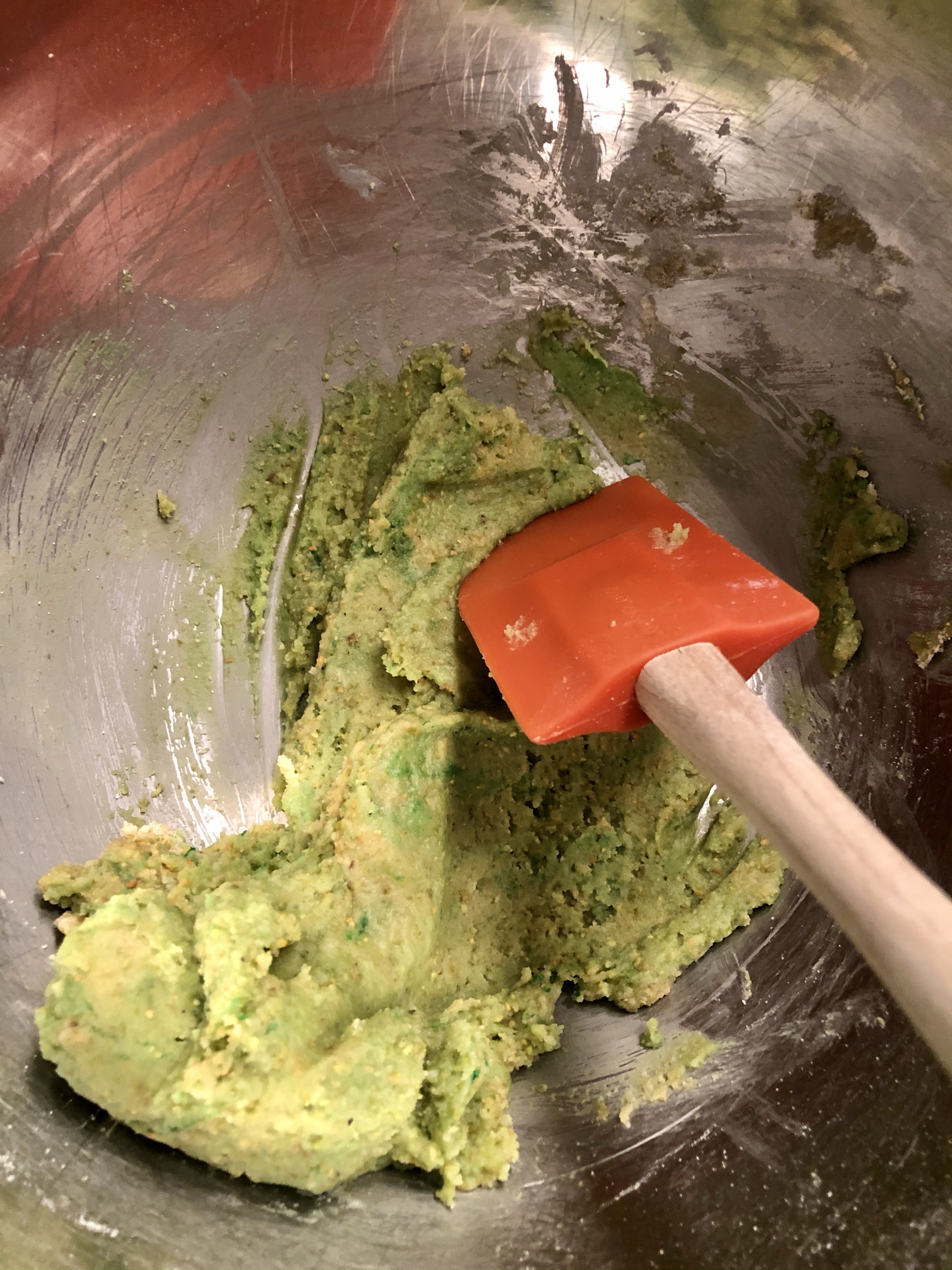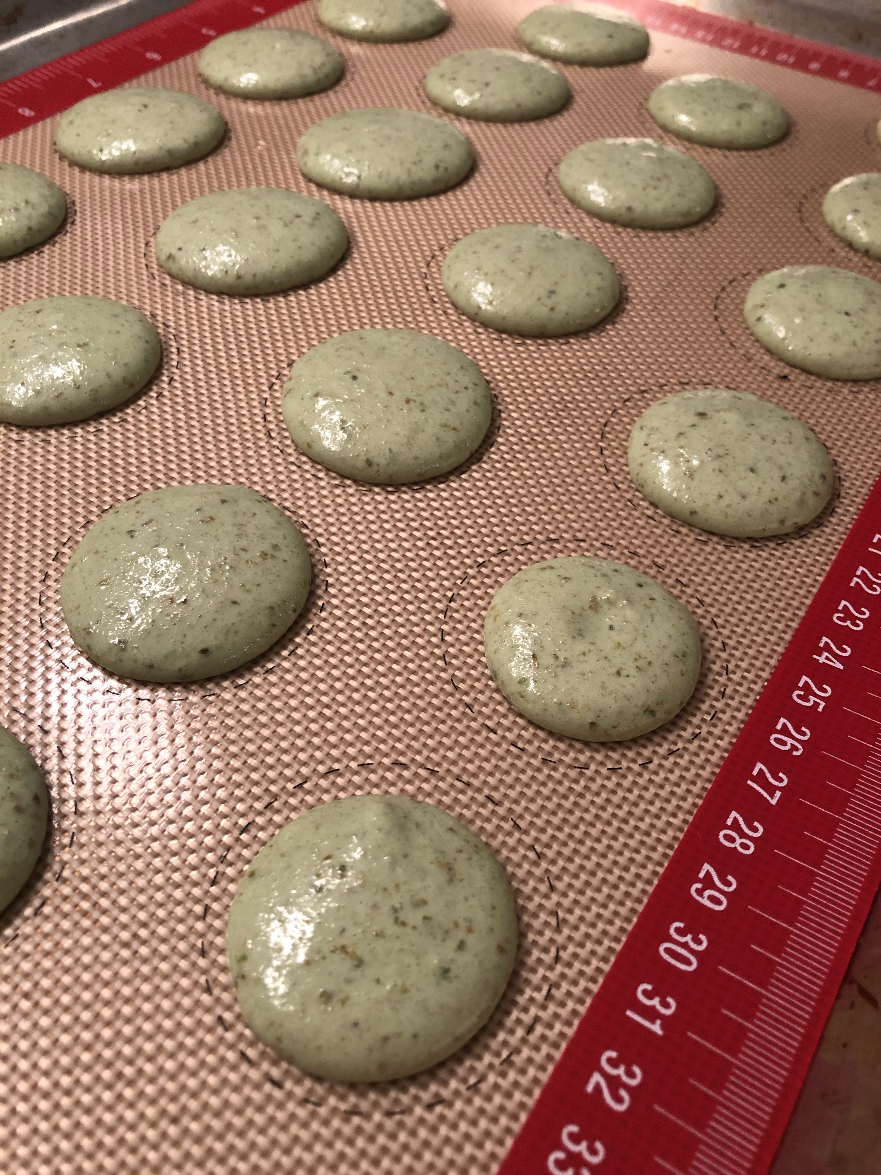 I could not put the almond four, pistachio flour, confectioners sugar, and egg white paste in the fridge for another try on another day when I felt resolved to take on more defeat.