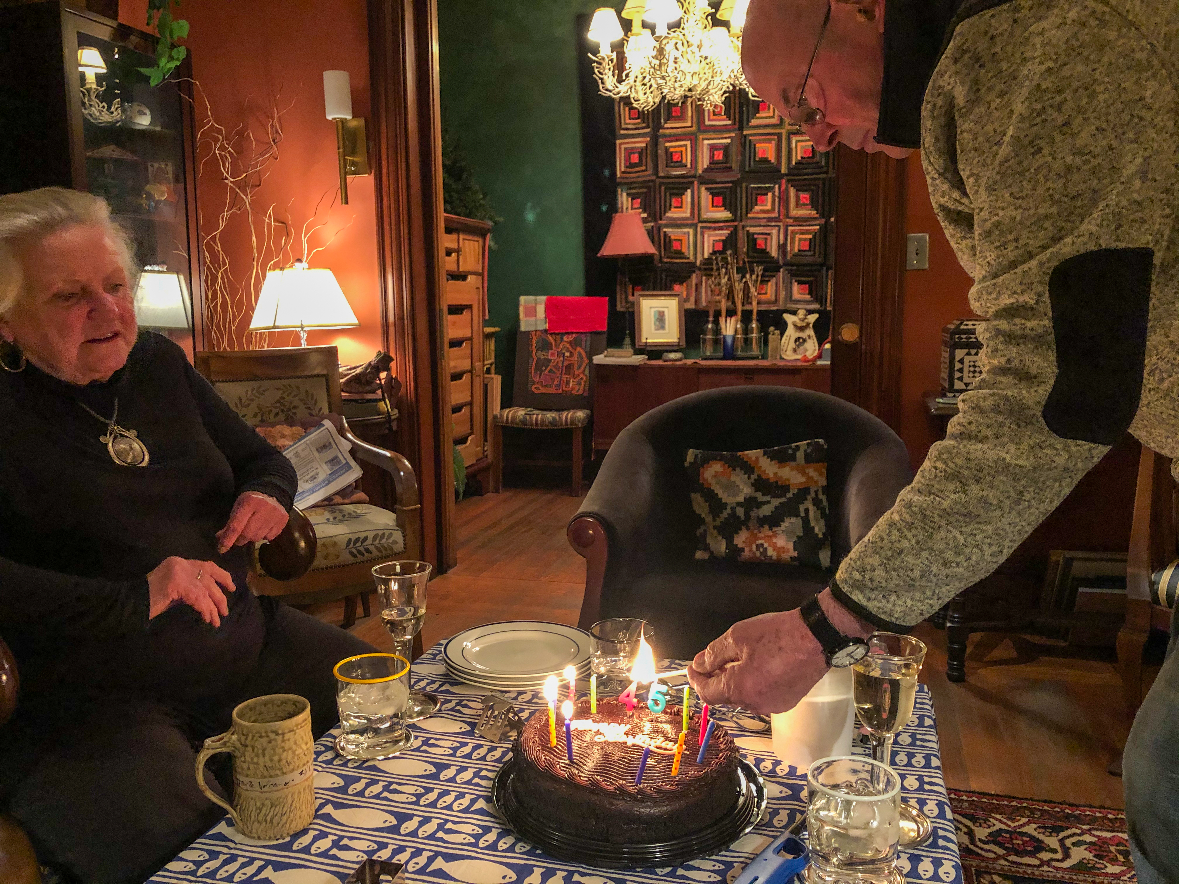 In the evening I went to Mom and Dad’s for dinner. We enjoyed a beautiful meal by Mom, and yummy, fudgey cake courtesy of COSTCO, and too many presents. Prior to all that, a zoom with my brother and SIL.