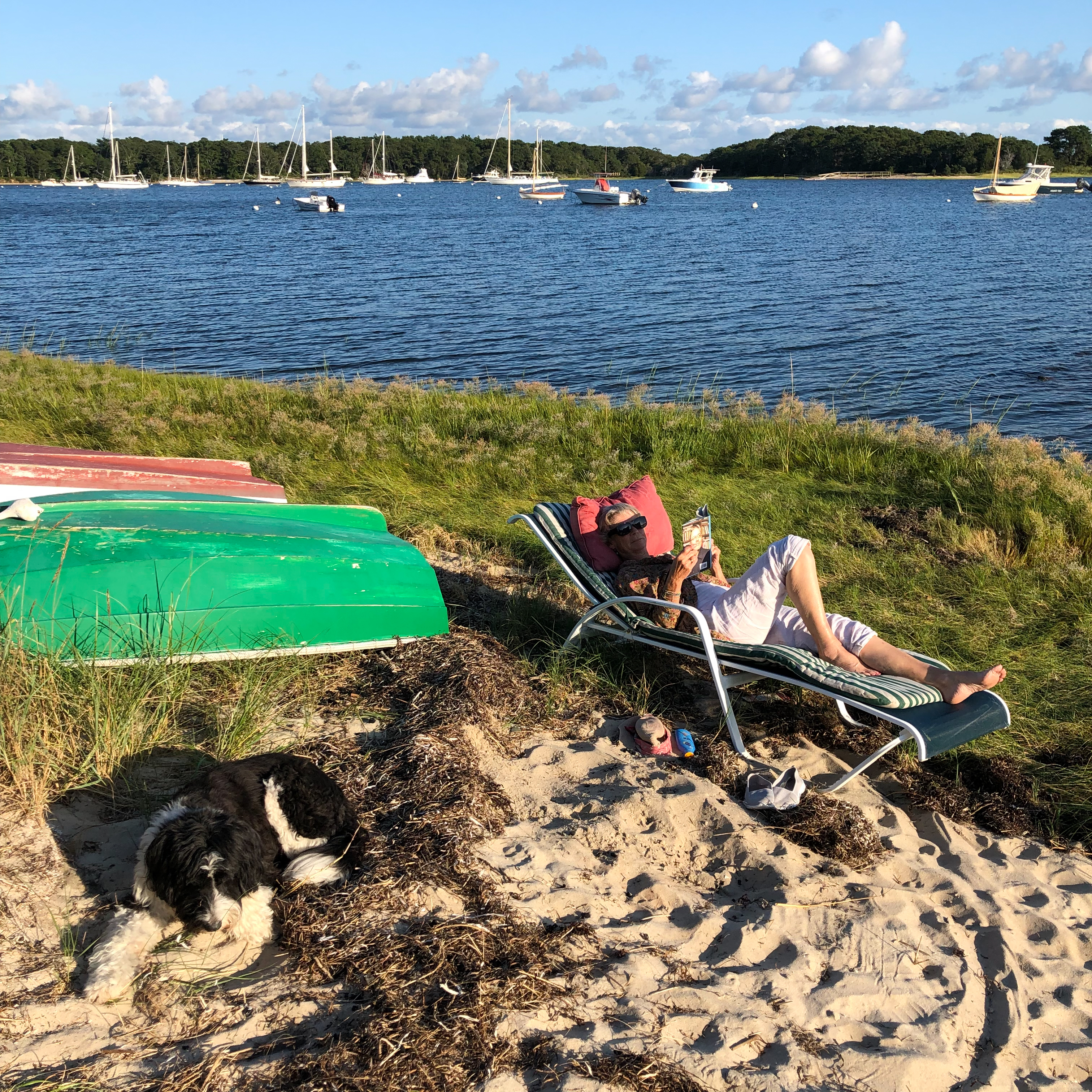 When we all went to the kitchen to work on dinner, Bootsie came along. Another rarity. She plopped herself down in the middle of all of us while we bustled around, and when we headed out to the deck to eat, she joined. She watched me with great interest while we ate our chicken, rice and salad. I cut her a small piece of chicken and hand fed it to her. The first time in her life ever that she ate something from the table (aside from the time I caught her sending couscous flying by flicking her tongue in the plate of an abandoned meal). She got many many more bites of chicken from me that night.