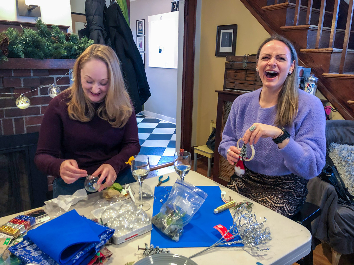 I really wanted to do something special this year, so I decided to host a small ornament making party. I thought it was quite brilliant, if you ask me. I had a lot of sun searching for supplies, and I kept the invite list small because OMICRON! I made some good food, including some beautifully decorated cookies made by a client of mine, and everyone had wine and was very merry. I think it was a success!