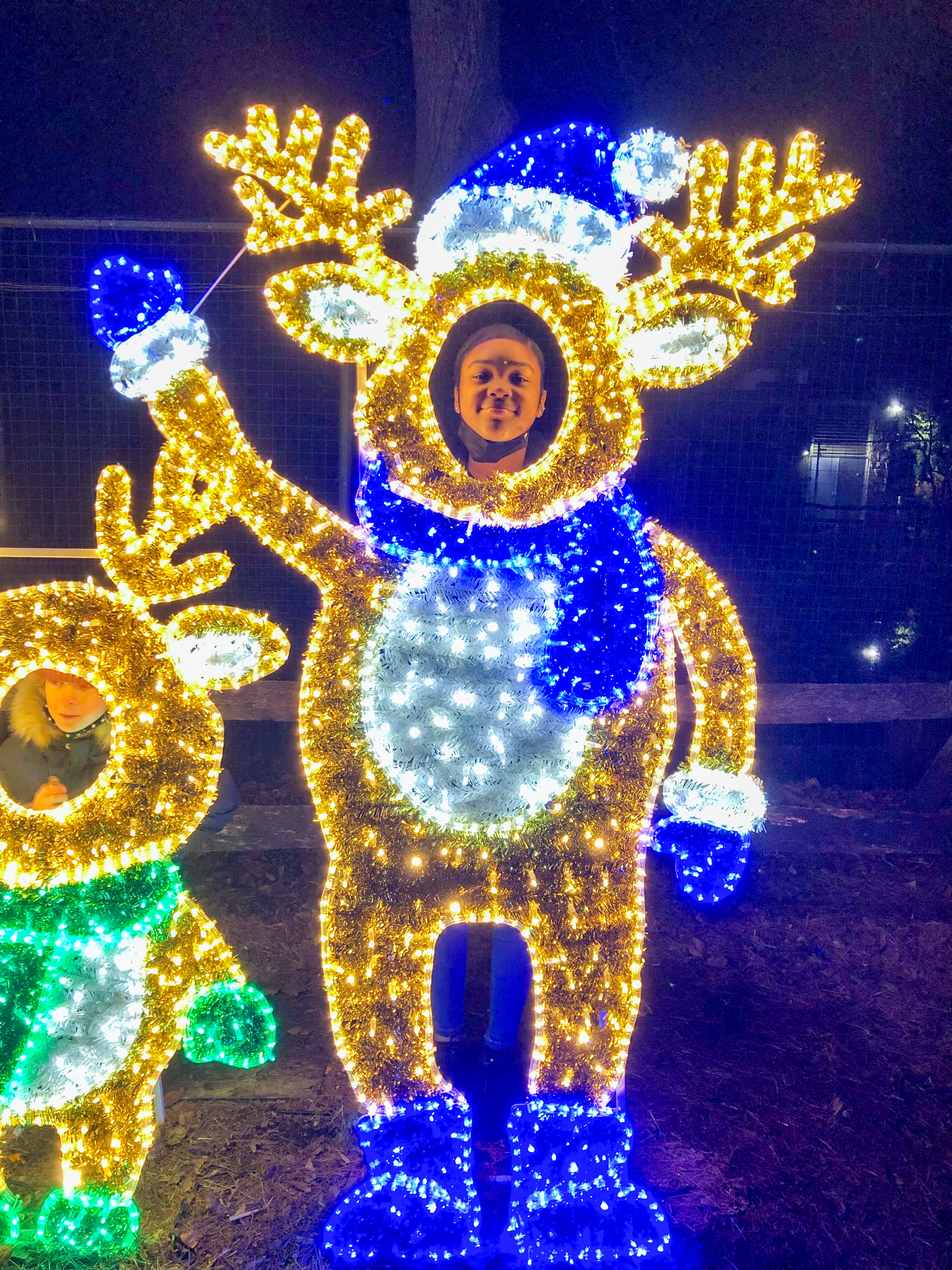 Anyway, we checked out The ZooLights at the Stone Zoo and it was really fun. I’ve never been and you could see how some of the displays have been used since they started this holiday event, which i found equal parts bizarre, outdated, and charming.