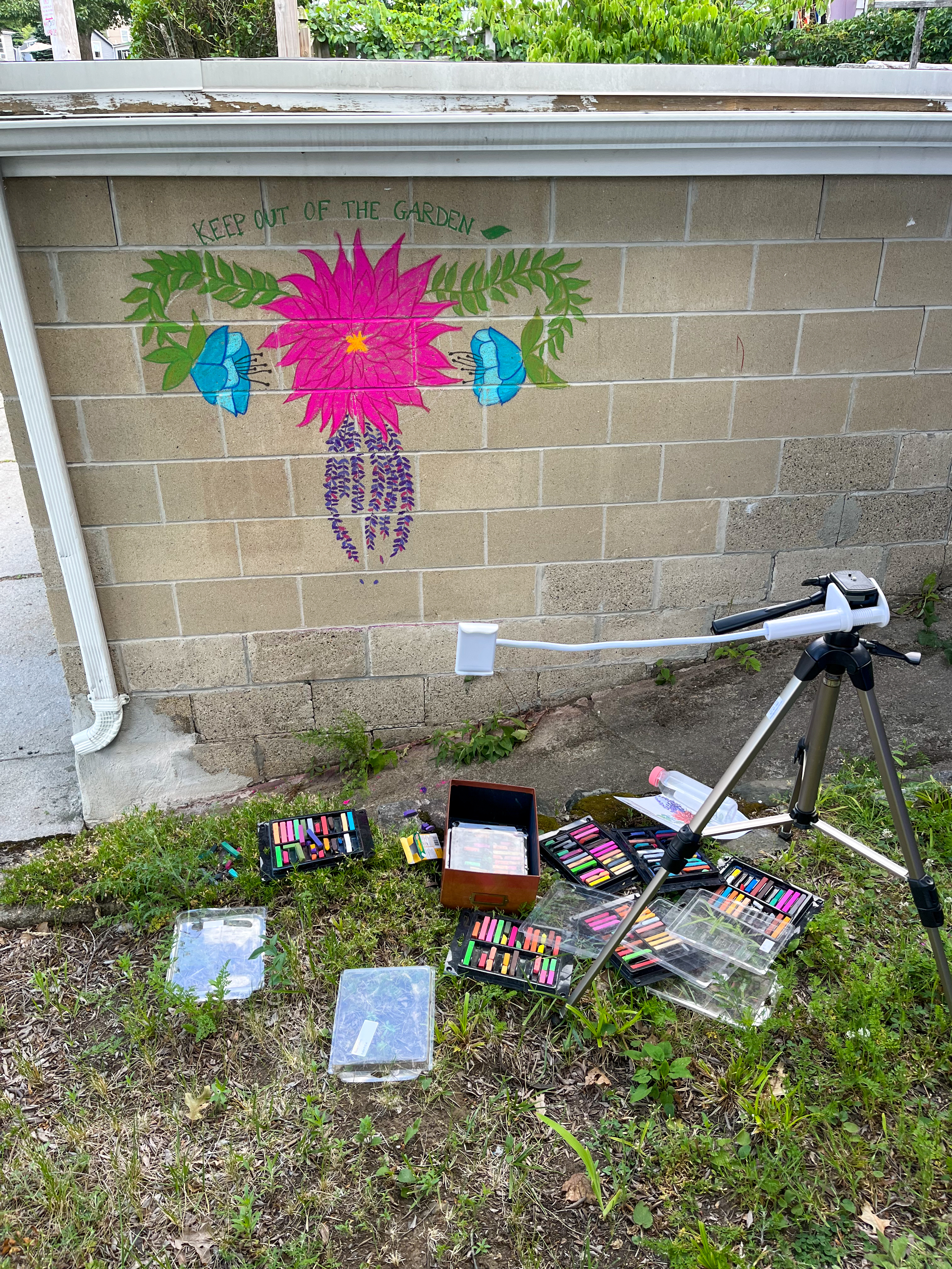 When I got home he texted “Did you notice anything different?” It took me a while to figure out that he had also come and power washed the side of my carport, which I have been unable to get clean of the previous mural. What a guy!