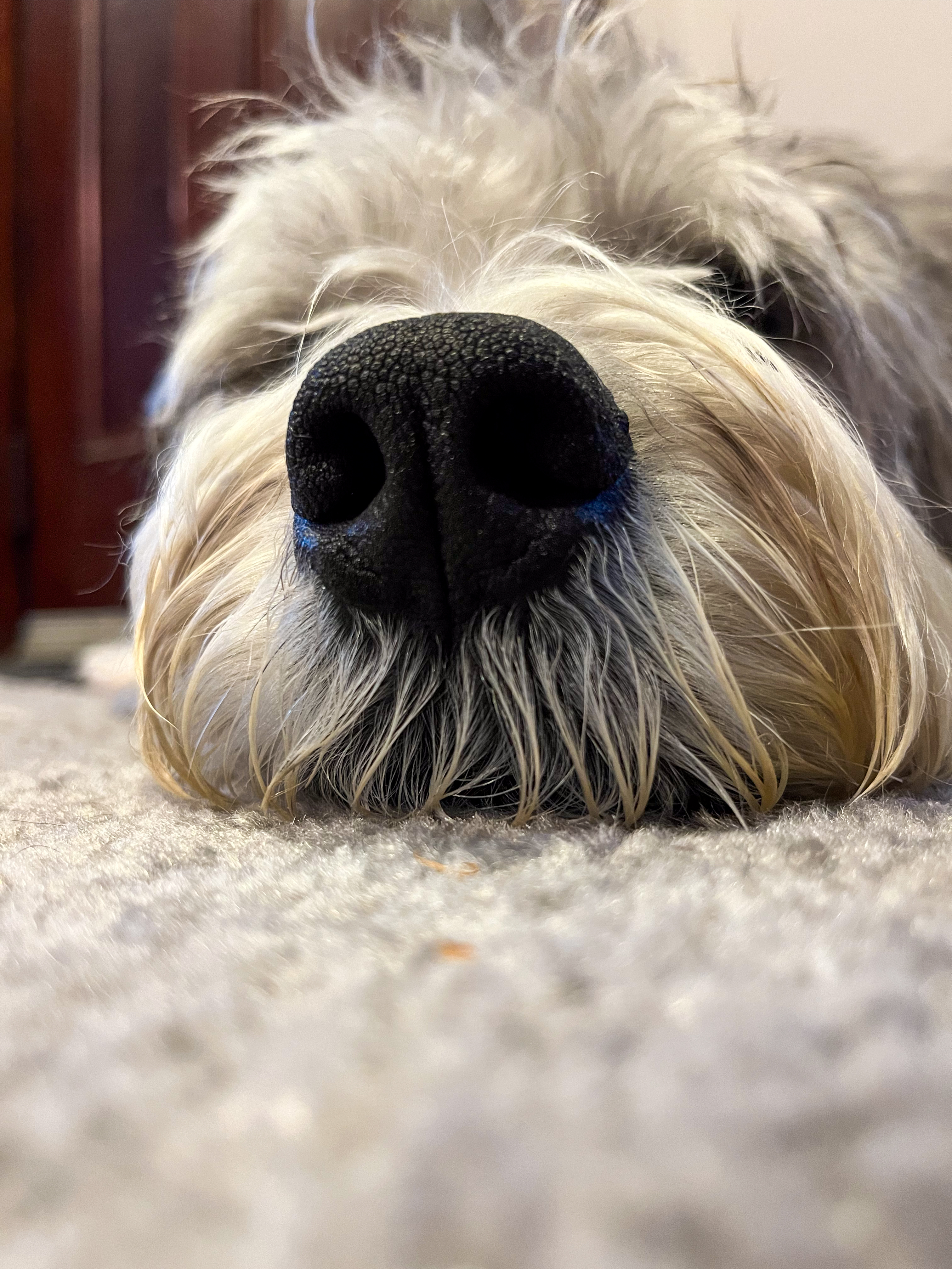 Harlow has the best nose in the whole world. It’s so perfectly black and uniform and adorable. I thought it would be fun to make a print of it, so I ordered an ink-free printing kit. I learned three things;