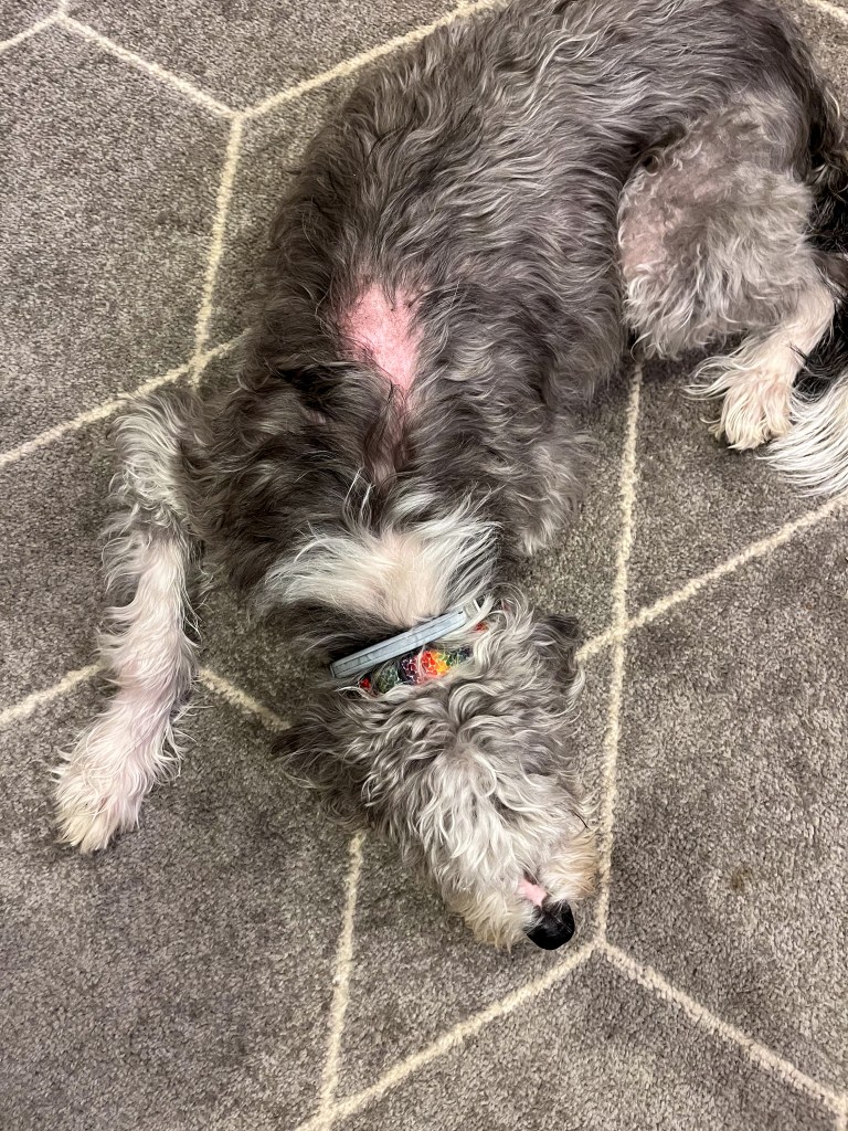So, she has a bald patch to go with her marble now, and thankfully, she is unbothered by both.