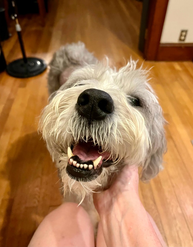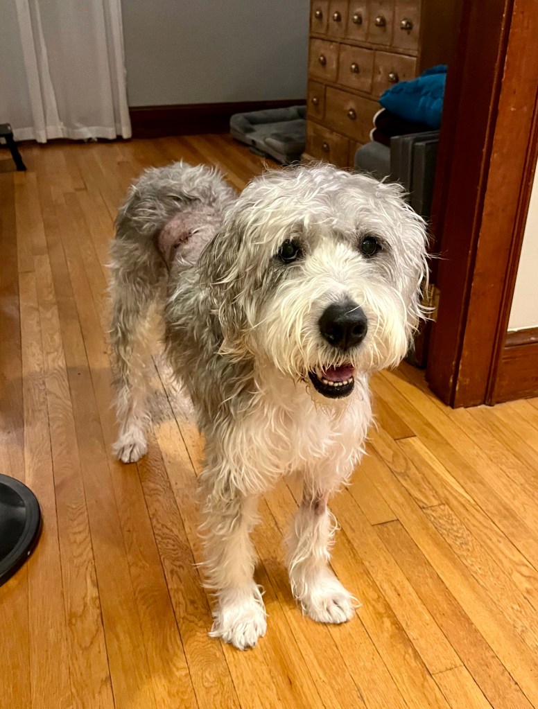 I worked from home Friday (I can thank the pandemic for making that a thing we can do now) because at that point I was very worried. When I gave her the gaba that morning she began to tremble. Are you cold? In pain? I don’t know! At one point I heard a thud downstairs while I was upstairs and hustled down to find her spread-eagle on the floor in front of the couch. She clearly had tried to get up onto the couch, fell, and couldn’t get herself up again or find a way to get her legs under her. It was very upsetting.