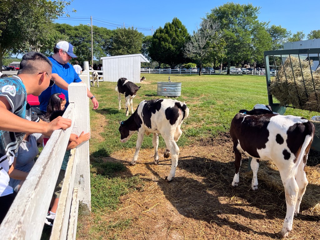 We wandered the Richardson’s property, visiting the cows and other animals, including a very pregnant goat who picked up a scratching brush and brushed at the little deck on their climbing structure. Nesting?