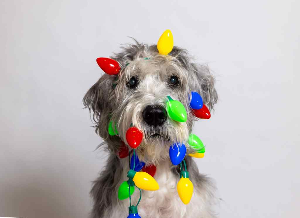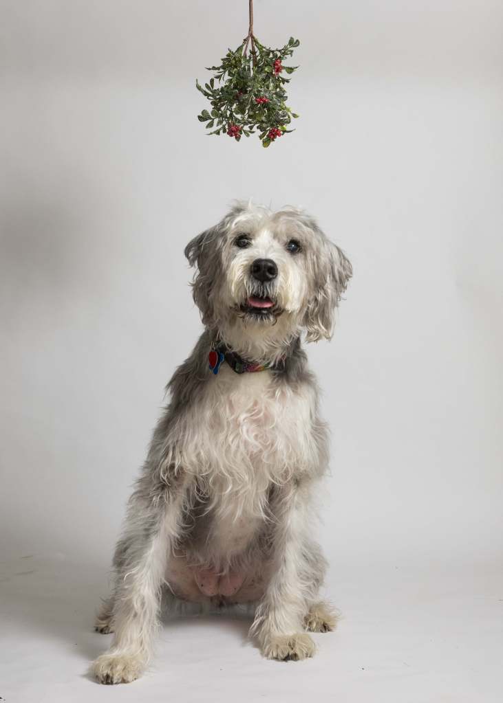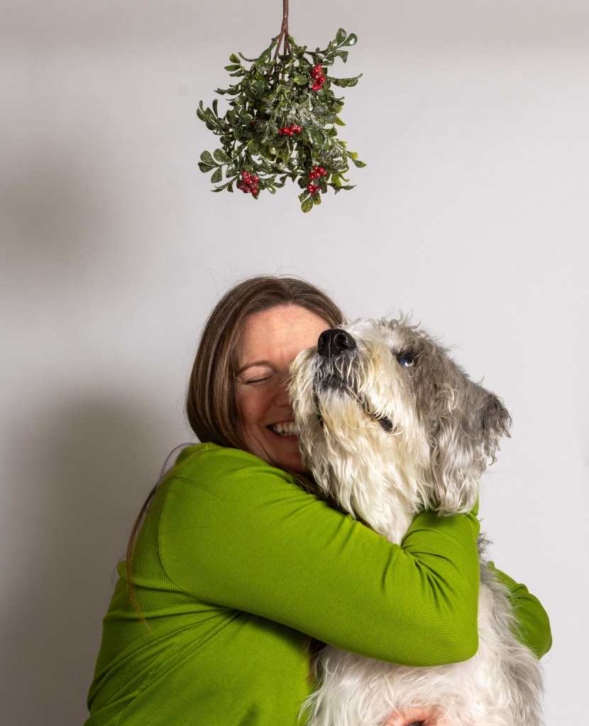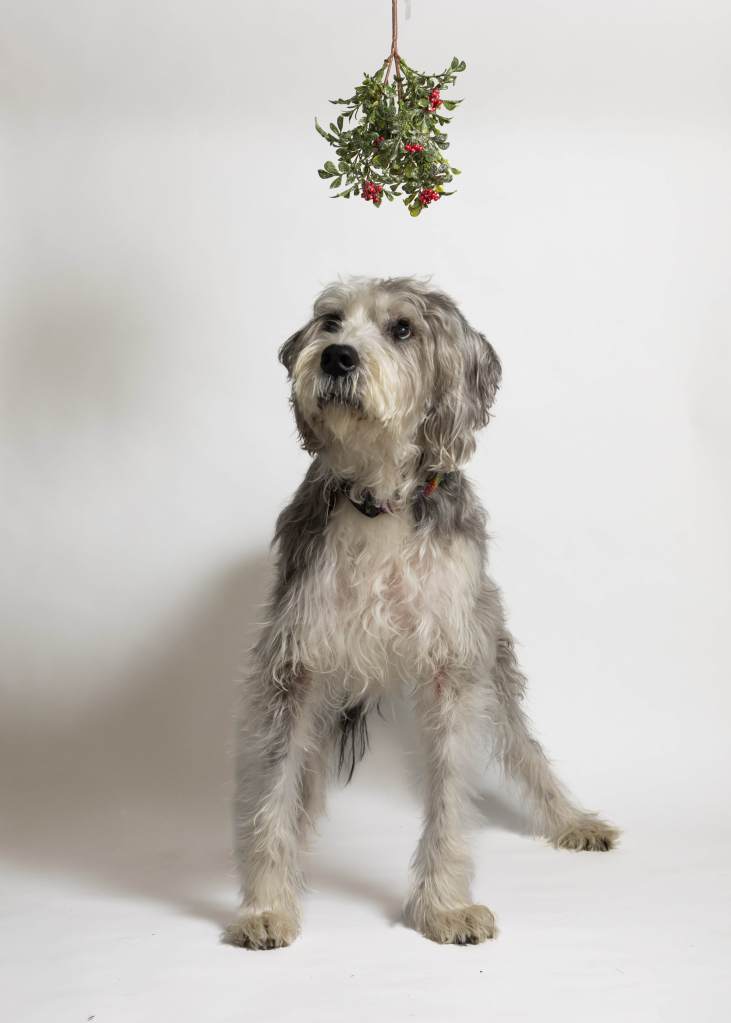 I set up a little studio in my crafting room, hanging wrapping paper from a backdrop stand, carefully ripping the paper and taping it back. Harlow experiences these photo shoots every year. I strive to give her the best treats during them, and I focus on being as quick as possible. She doesn’t find it fun but she tolerates me.