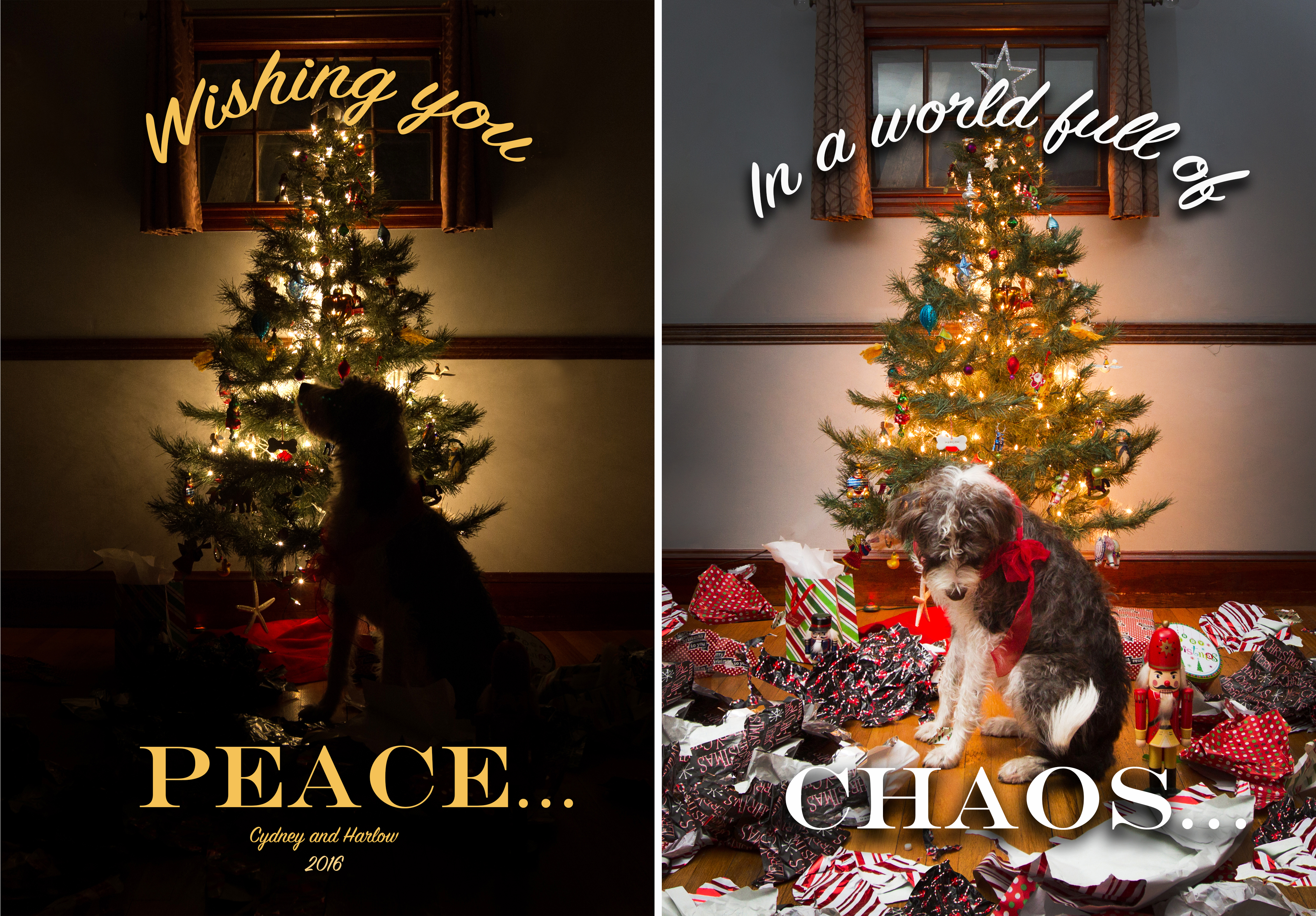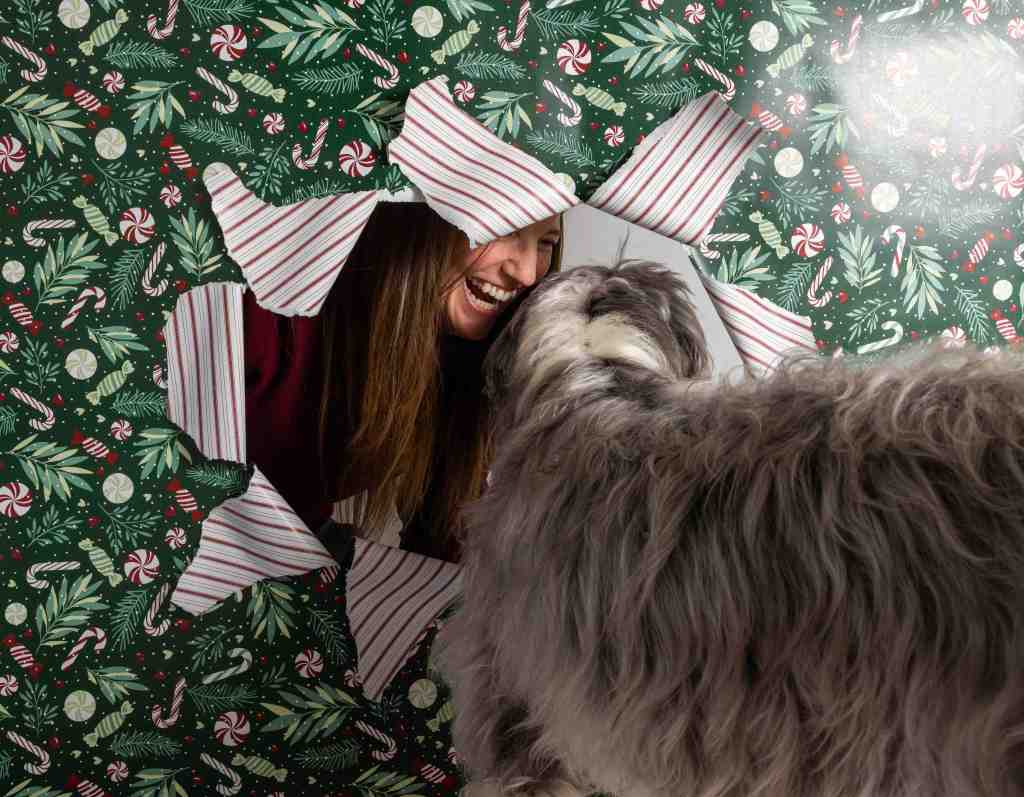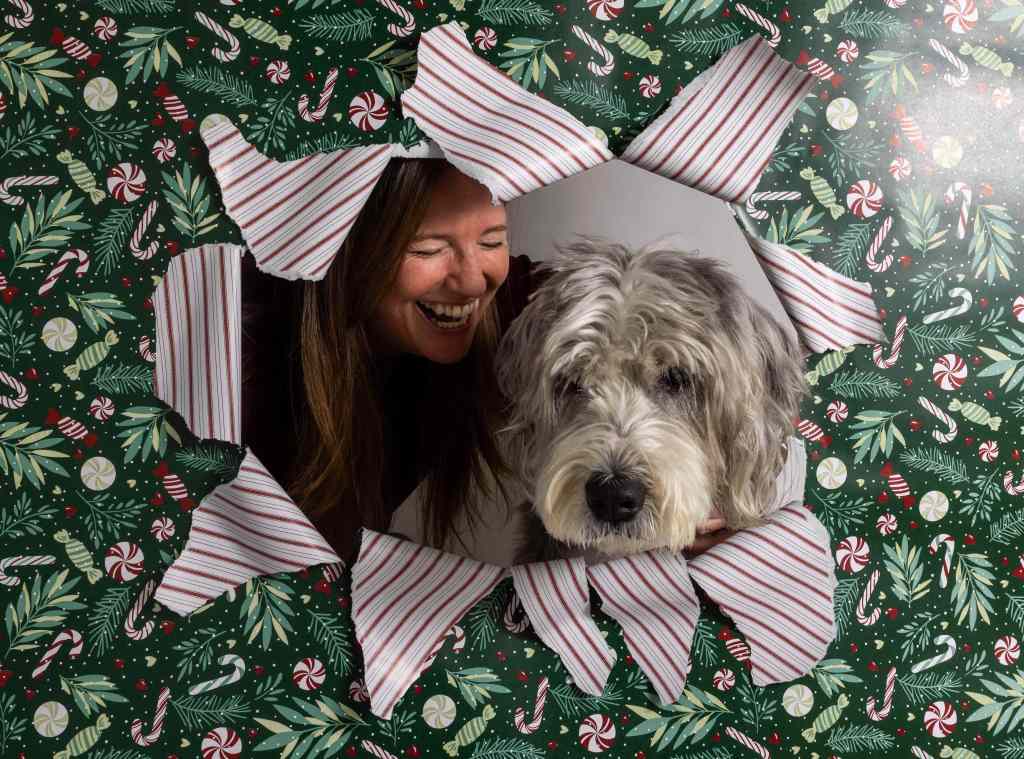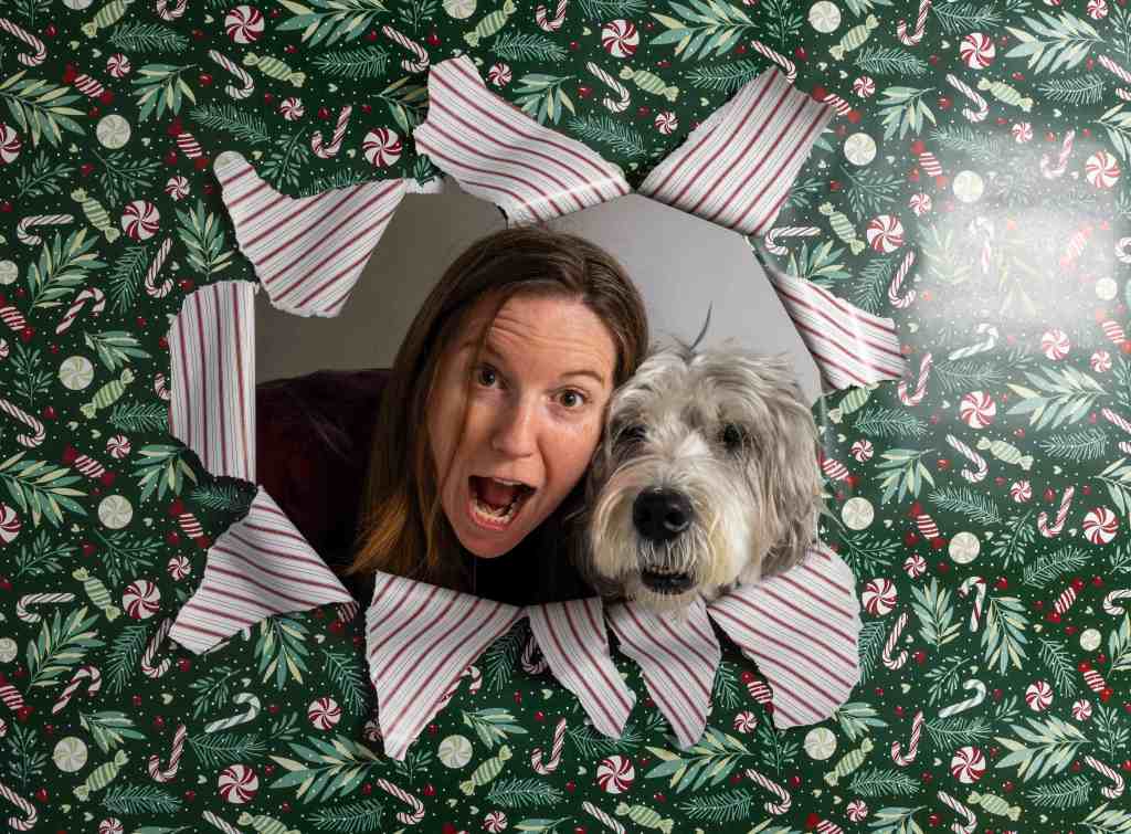 As per usual I wrung my hands to come up with an idea that was on par to all the past ones. The dog’s head through wrapping paper is trending online which made it unappealing to me, but still, I went for it. This time, considering the circumstances, I included myself.