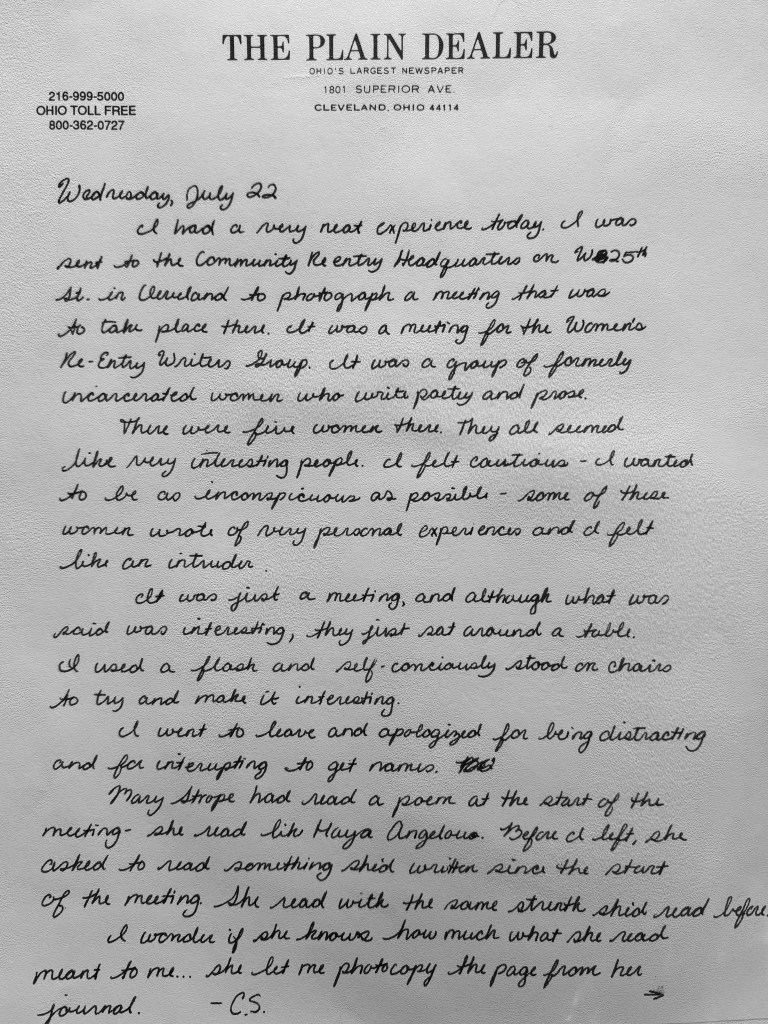 I had a very neat experience today. I was sent to the community Re entry Headquarters on W 25th St. in Cleveland to photograph a meeting that was to take place there. It was a meeting for the Women’s Re-Entry Writers Group. It was a group of formerly incarcerated women who write poetry and prose.